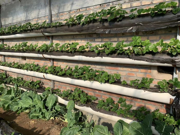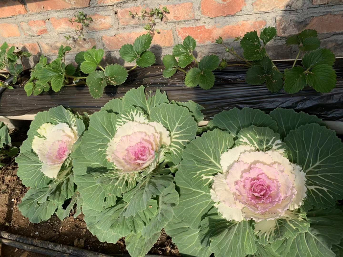 金六环农业园内,草莓棚墙边套种羽衣甘蓝。新京报记者 杨亦静 摄