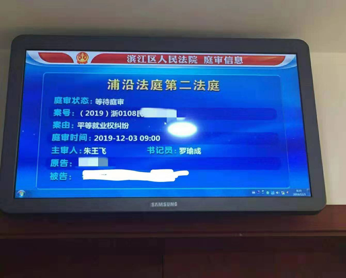 8月份,马瑶以“平等就业权纠纷”为由提起诉讼,10月法院正式受理该案件。12月3日,案子在杭州市滨江区人民法院浦沿法庭开庭,该案未当庭宣判。
