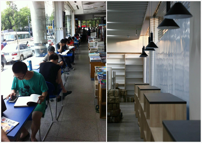 装修之前的读书区域(图/三联韬奋书店供图)与即将开放的阅读区域对比。