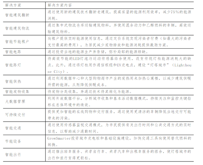 GrowSmarter项目选择在斯德哥尔摩的阿尔斯塔区开展试点,提供了包括低能耗社区、智能废物收集、智能电路、智能路灯、智能出行和大数据管理平台等在内的12类智慧城市解决方案,并将“可持续”这一思想渗透在解决方案中。