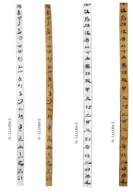 玉门关汉简原编三百四十二个简号,但其中98DYC∶26与98DYC∶46合缀、Ⅱ98DYT1∶3与Ⅱ98DYT5∶75合缀,另有Ⅱ98DYT1∶43、Ⅱ98DYT4∶66两简因未找到对应的原简且仅有一两个字的释文,故而不录,实际有简号三百三十八个。另外还有四十多枚残简,过去凭目力而无法释读者未加编号,此次经红外线扫描发现,大部分都有笔画和信息,有些还有重要的文字,总共四十三枚,编为98DYC∶51—93 。其中仅有笔画而暂时难以释读的,仅出图片,不出释文。如此,本书所收玉门关汉简总计三百八十一枚。