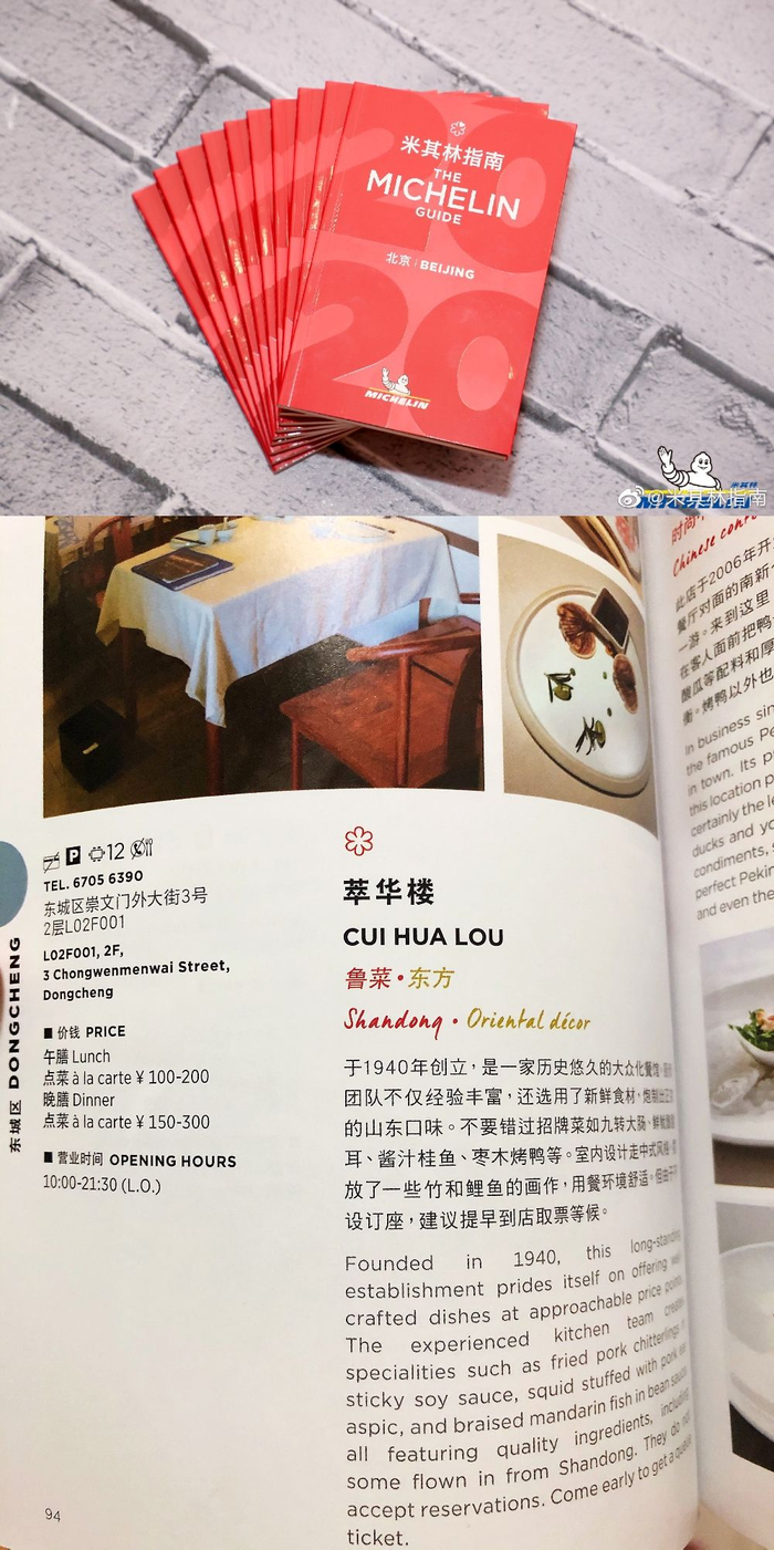 已录入《北京米其林指南》的萃华楼介绍。图/萃华楼官网微博