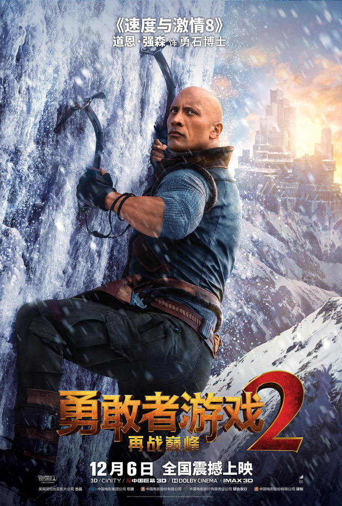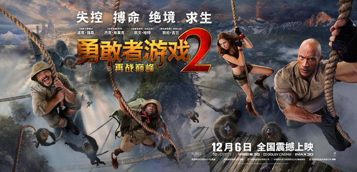 索尼重启《勇敢者游戏》绝对算是近年来翻拍系列中,口碑票房双赢的一部作品,前作的成功让越来越多的人都期待续集的表现,尤其是影片完整保留原班人马,并且新的一集预算并不比第一部(9000万美元)低。纵观今年好莱坞分账大片的市场表现,大卖及成为黑马的情况并不多,破10亿的仅有5部,创下了近三年的最低值,观众对于续集和衍生影片的兴趣不如以往,但《勇敢者游戏2》依旧赶在这样的情况下提前上映,也可以看得出来索尼对该片市场表现的信心,突然宣布的“提档”,自然也有承担“救市”的重任。作为今年贺岁档最具有分量的进口大片,将超前北美、在12月6日公映的《勇敢者游戏2》市场前景不可限量,它也很有可能为今年好莱坞大片在内地的征程画上一个圆满的句号。主演“岩石”强森就毫不犹豫地告诉新京报记者:“制作《勇敢者游戏》最酷的就是没有约束,因为这是一个电子游戏的世界。既然制作出如前作般成功的电影,我们就必须提高标准,狠狠地拼,再升一级,我觉得我们成功地做到了,还加了新角色,各种意义再上巅峰,不好看才怪。”