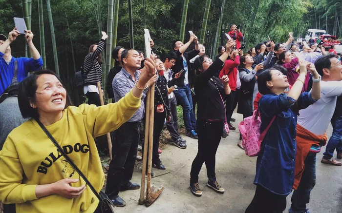 游客们观赏竹海飞人绝技。 宁波奉化溪口镇宣传部 王强 摄