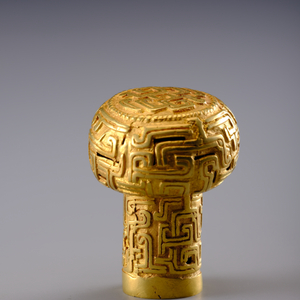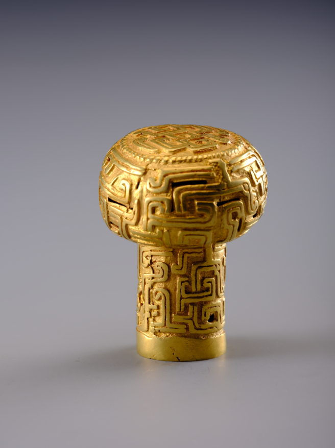 刘家洼墓地出土的金质权杖头,是迄今国内发现的唯一一件金质权杖头。国家博物馆供图
