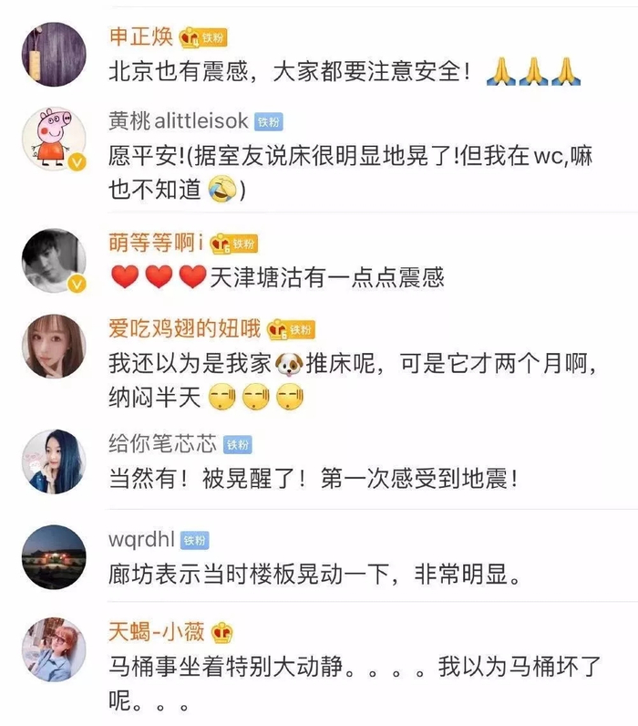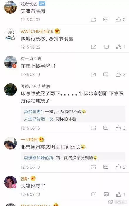 天津、北京等地网友也表示,那一刻有震感,很明显。