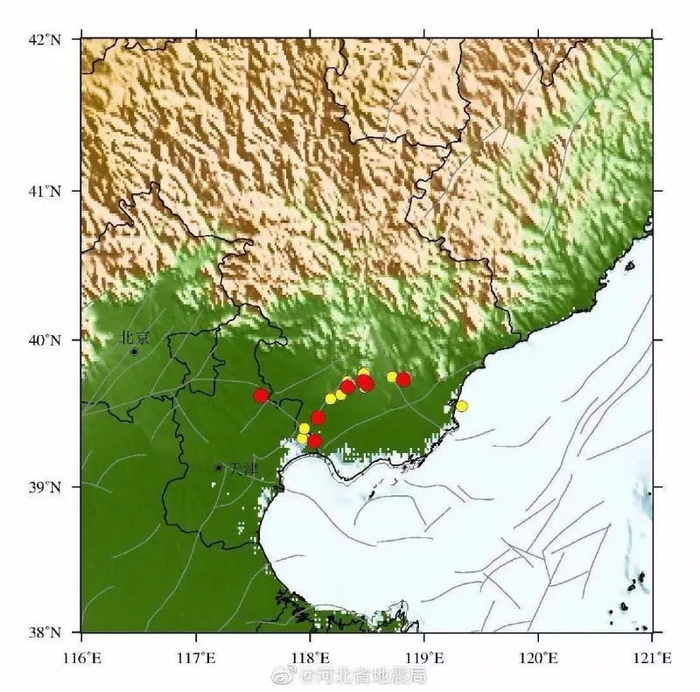 蒋海昆:“这个地区最后一次5级地震是发生在1995年,唐山的5.1级地震,之后就再没有5级以上地震了,就3~4级地震活动为主。4级地震在这个地区平均2~3年一次。在今天这一次地震之前的上一次是2016年的4.0级地震,所以,这次地震是唐山老震区的一次正常的起伏活动。”