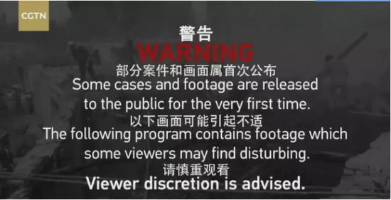 “警告。部分案件和画面属于首次公布,以下画面可能引起不适,请慎重观看。”