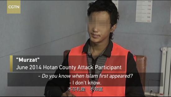 纪录片中,2014年和田“6·15”暴恐案案犯木尔扎提在被问到“伊斯兰教有多少年历史?”“‘吉哈德’准确意思”“穆斯林要做的五个功课是什么?”时,回答都是“不知道”。他们只记得,(头目说)不搞“圣战”就进不了天堂。
