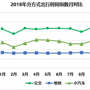 从各种出现方式来看,公交出行时间指数年均值3.60分钟/公里,小汽车出行时间指数年均值为2.92分钟/公里,地铁出行时间指数最低,年均值为2.33分钟/公里。