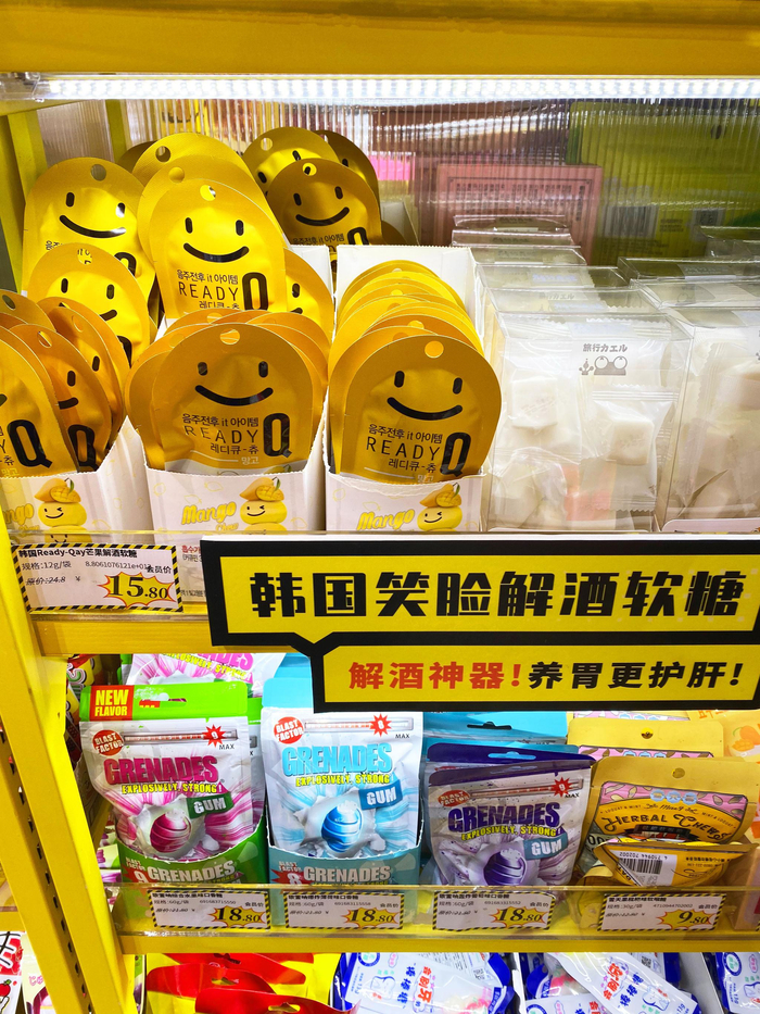 京蜜最后发现了两款韩国进口的软糖,一款是“日东瘦身软糖”,另一款是“韩国笑脸解酒软糖”。“日东瘦身软糖”的宣传语是“吃着变瘦!女星抢着排队买!”,“韩国笑脸解酒软糖”是“解酒神器!养胃更护肝!”。这些糖果真的这么神奇吗?吃了就能变瘦?嚼了就能解酒?