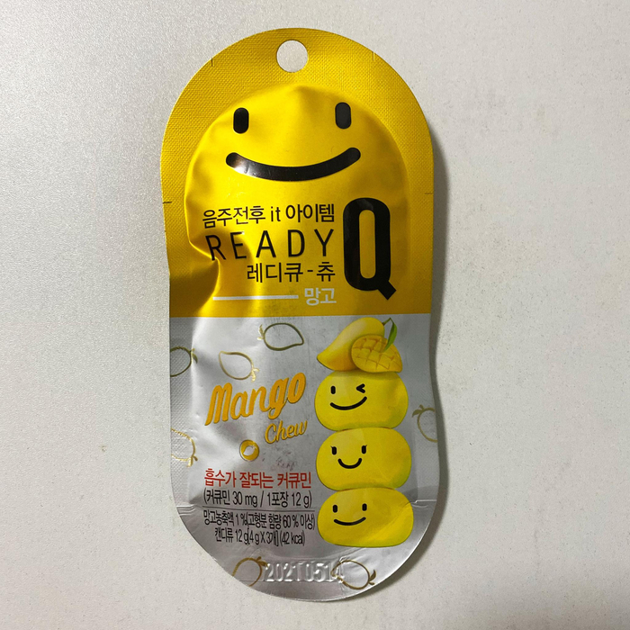 京蜜随后查看了两款软糖的配料表,有了令人意外的发现。所谓的“韩国笑脸解酒软糖”的中文标识中写明,这就是一款普通的芒果软糖,配料表主要成分是玉米糖浆、明胶、柠檬酸、果胶、食用香料等常规的制糖原料,并没看到“解酒”成分。