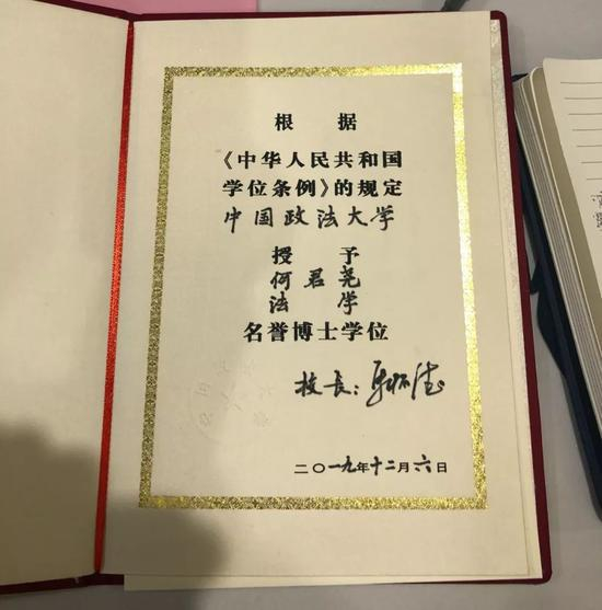 视频-何君尧展示名誉博士学位证书:上面有我们国家的国徽,很庄重