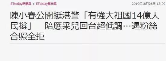 台湾“东森新闻云”下午报道认为,因陈小春护航港警的政治立场,引来一些香港及台湾网民抗议。“东森新闻云”10月报道曾提到,陈小春政治色彩鲜明,当时他为香港特区政府拍摄支持港警影片,“阿Sir,14亿同胞挺你!”。