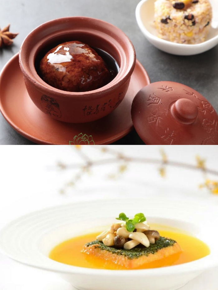 在以烤鸭闻名的北京,三清潭以招牌菜——烧鹅打出天下,还有香蜜鹅肝、卤水鹅头拼掌翼等菜式也都有着好口碑。这里选用的是广东黑棕鹅,每只在7.2-7.6斤之间,定期空运到北京,以保持鹅的鲜度和口感。食客可以自由选择烧鹅的肥瘦和部位,但由于数量有限,米其林建议食客要预订。除了烧鹅,同样需要预订的炖汤也十分出色,其他各式经典粤菜、点心和煲仔菜都建议尝试。