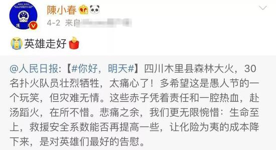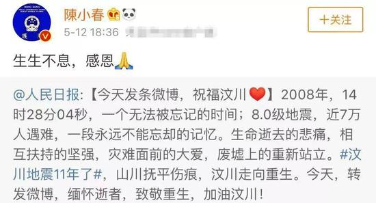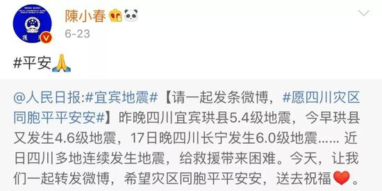 此前,陈小春在“14亿护旗手”“依法制暴”时站出来转发支持,在四川地震、宜宾地震、四川木里县森林大火时,也都为逝者转发祝福……