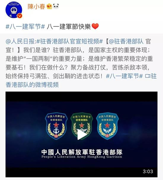 8月,香港暴徒侮辱国旗一事引发香港市民及内地民众的强烈愤慨。当时,微博话题#五星红旗拥有14亿护旗手#登顶热搜榜,陈小春也发声力挺↓↓