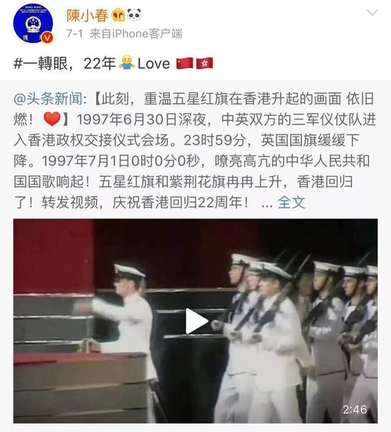 香港回归22周年,他真诚表达温暖与爱↓↓