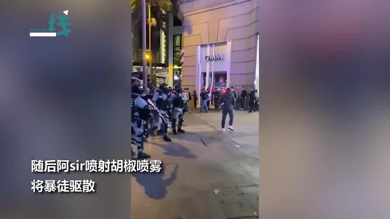 原标题:引起舒适!香港暴徒被捕同伙上前抢人 港警喷射胡椒喷雾喝退暴徒