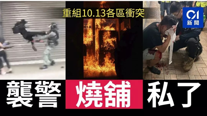 整个10月期间,“屠龙小队”多次夜袭警署,他们抛出汽油弹,让警署门外火光熊熊,冒出大量浓烟。警察出动后,他们用砖头、铁棒等武器和警察互击。