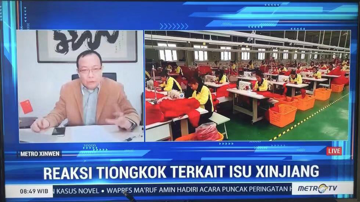 12月10日,印尼最大的新闻电视台——美都电视台早间新闻节目与中央广播电视总台印尼语部评论员王鑫连线,就新疆问题回答观众提问。此前,印尼语部通过社交媒体平台发布了CGTN制作的两部关于新疆反恐的纪录片,48小时内吸引了10万网友浏览、互动。美都电视台关注到这一现象,联系总台印尼语部,邀请印尼语部评论员王鑫在10日早间新闻节目《耳听为虚,眼见为实》里连线回答印尼观众提出的问题。在7分钟连线时间里,王鑫用事实批驳美国霸权行为以及某些西方媒体对中国新疆的歪曲报道,印尼观众反响热烈。
