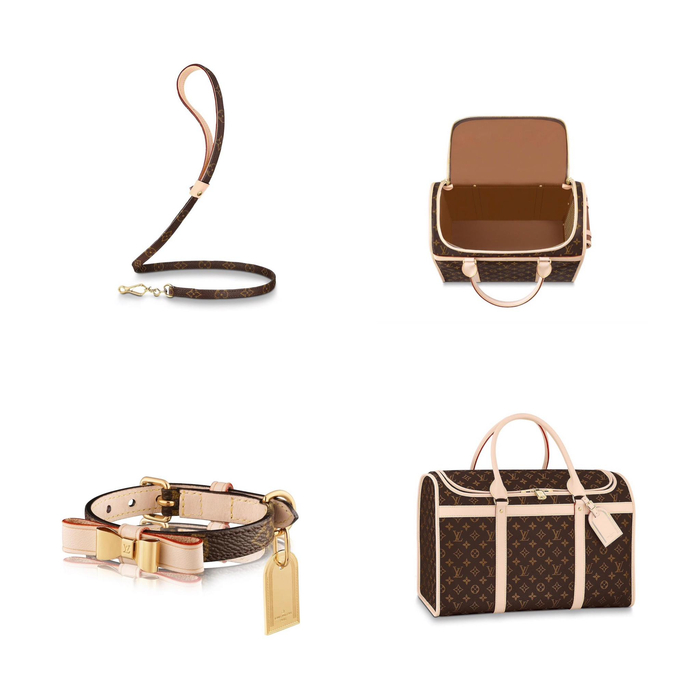 Louis Vuitton推出过不同尺寸的Monogram宠物袋、适用于小型狗的牵引绳以及精致的配套宠物项圈,吸引爱狗人士购买。
