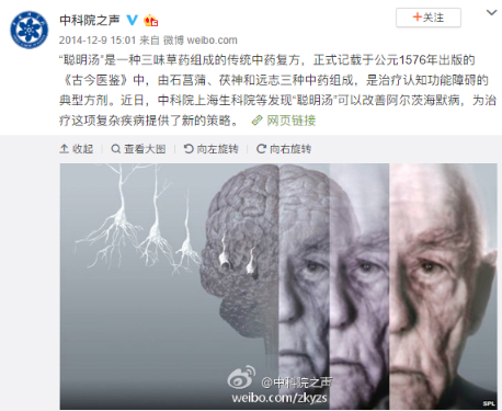 此前,该篇论文因提出“聪明汤”可改善阿尔茨海默病备受关注,中科院官博曾力荐成果。