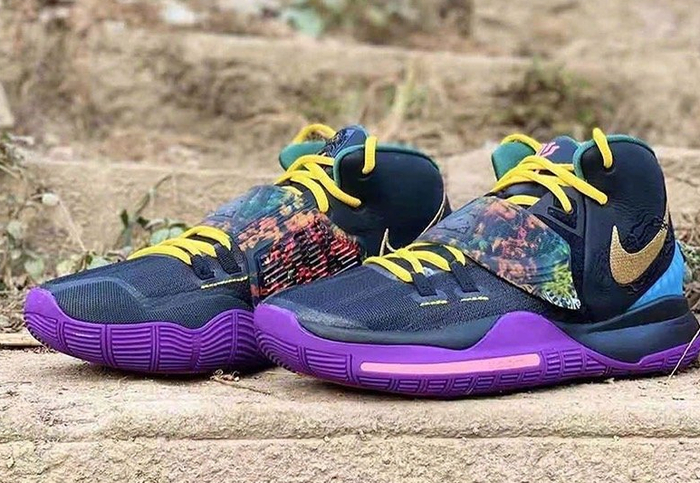 此外,Nike Kyrie 6的中国年鞋款照片也已经被曝光,配色以紫、蓝、黑、黄为主,非常鲜艳,颜色渐变的涂鸦窗花,让人联想到去年的“百家衣”系列。