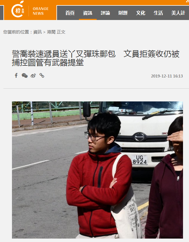 原标题:港媒:男子跨境购买攻击性武器,港警乔装快递员将其拘捕