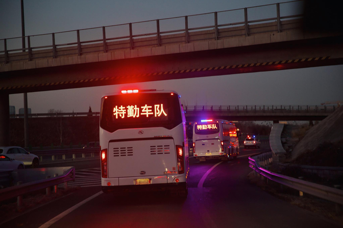 押送犯人的特勤车队前往火车站。新京报记者 郑新洽 摄