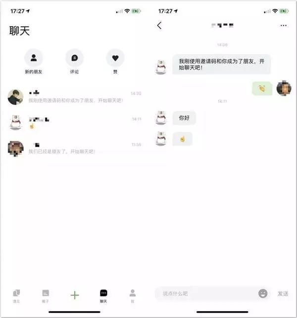 在“聊天”页面,用户可以与好友进行聊天互动。“我”页面,主要展示用户的个人主页信息。