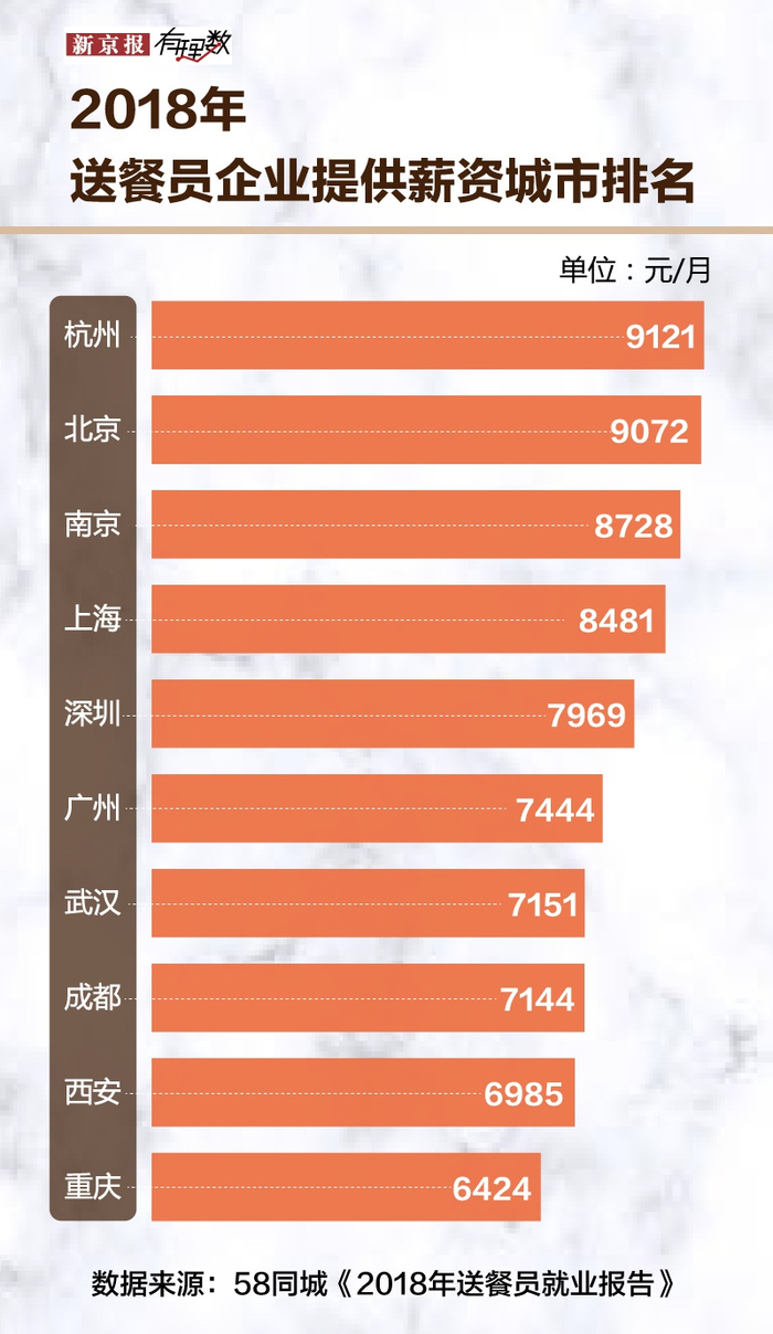 相对于莫斯科的平均工资,这份工作的收入谈不上可观。据58同城发布的《2018年送餐员就业报告》称,全国平均薪资水平达到7750元,在杭州、北京甚至可以达到9千元以上,超过俄罗斯外卖员的月薪。