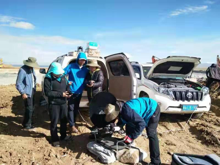 航天恒星技术团队在三江源采集数据。(航天恒星供图)