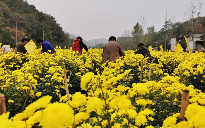 内乡县菊花种植基地,当地村民正在进行菊花采摘。摄影/新京报记者 马瑾倩