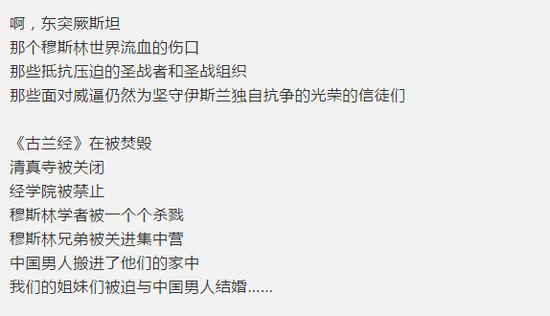 有多恶毒?他的言论不仅大造谎言,挑拨民族关系,还公然鼓吹“圣战”、“东突”,文字背景还给配上了“东突”旗帜的图片,透出一股浓浓的恐怖主义气息。
