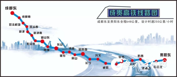 西南高铁看贵阳,打破“瓶颈”见格局。在西南川滇黔渝四省市中,贵州的高铁运营里程高居榜首,沪昆、贵广、成贵、渝贵四条高铁动脉在贵阳交汇,奠定了贵州在西南乃至在全国“八纵八横”铁路网中不可取代的地位。成贵铁路是我国“八纵八横”高速铁路网中兰(西)广大通道的重要组成部分,它在成都与西成高铁相连,在贵阳与贵广铁路、沪昆高铁相连,不仅承担着西南地区省市间的城际、区(县)际客流运输功能,同时兼顾西南、西北地区与华南地区的长途客流运输功能,亦是四川省南向最快捷的铁路出海大通道,填补了川南、滇北、黔西毕节地区没有高铁的空白。
