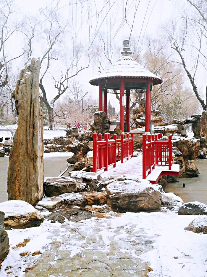 位于北京二环内,平日里,似乎就是个供附近大爷大妈遛早散步的地方,但一到了冬天,龙潭公园的魅力就迅速蹿升。除了著名的龙潭庙会,昨天的一场大雪已经让龙潭公园提前有了“瑞雪丰年”的感觉。来看看这一片冰雪的“琉璃世界”,真有种“人在画中游”的意境。