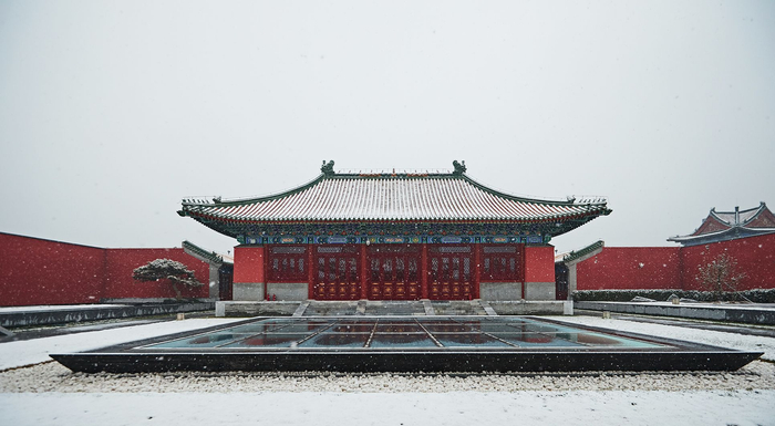 这里是古代帝王祭地的地方,每逢春节都会有热闹喜庆的庙会,但一场大雪让地坛公园披上了晶莹洁白的外衣,就连平时熟悉它的人,似乎都有点被它惊艳的样子惊呆了:整个世界只剩下红白两色,中国古代皇家园林讲究的对称美感被成倍放大,简直美不胜收。