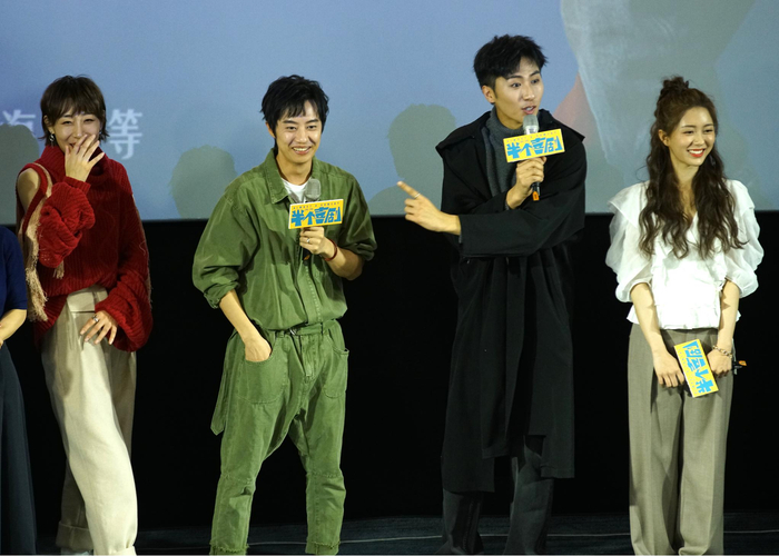 左起:主演任素汐、吴昱翰、刘迅、汤敏映后交流。摄影:新京报记者 郭延冰