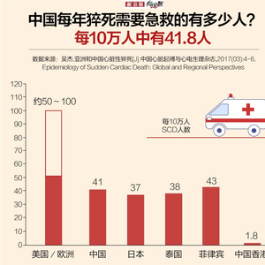 虽然这一发病率数据和其他国家相比并不高,但以中国庞大的人口推算,全国心脏性猝死的每年总人数为54.4万人,这意味着我国每分钟将有1人发生心脏性猝死,为世界之首。