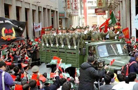 1999年12月20零时,澳门回归中国。那天,当地政府组织安排了500名学生在关口欢迎解放军驻澳部队。出乎意料的是,澳门竟有3万人自发到关口夹道欢迎。