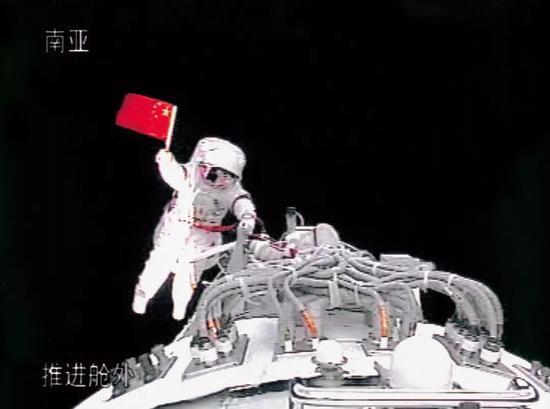 2008年9月27日翟志刚执行中国首次空间出舱活动他在太空中展示五星红旗的那一刻亿万国人欢欣鼓舞