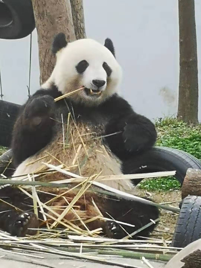 大熊猫华荣正在吃竹子。青神县竹编管理委员会熊猫馆供图