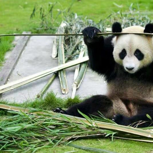 记者在熊猫馆看到,5岁的苏星吃竹子前,总是双手举着竹片,用头或鼻子做支点,“头劈青竹片”向下一拉,竹片立刻断开,再放到嘴里嚼。