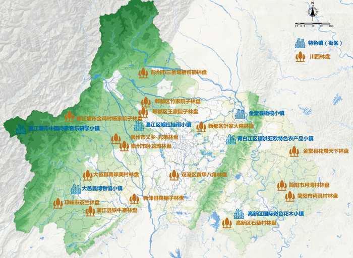 据介绍,我市依托“6(特色镇) 16(川西林盘)”示范项目创建绿色发展先行区,梯次推进整体成势培育价值转化新平台,依托特色镇、林盘体系构建公园城市乡村新形态,以“景观化、景区化、可进入、可参与”赋予城市生态文明建设的新内涵。