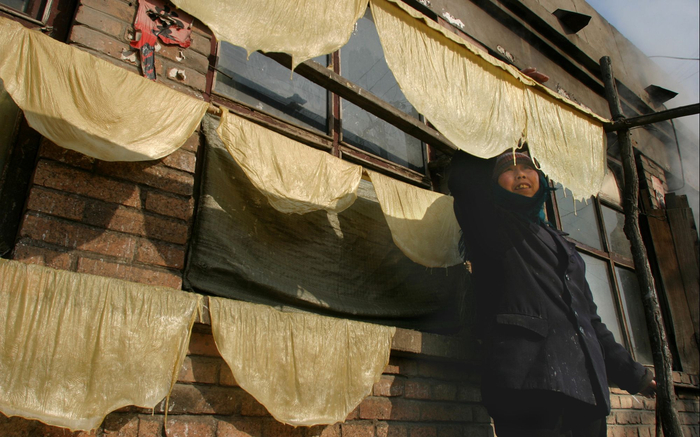黄米糕,出于一种极耐旱的作物黍子。黄米糕蒸熟、抟软后,色泽金黄,劲力十足,入口后久嚼不化,如咀牛皮。本地人吃黄米糕的方法不一而足:或填以豆沙和红糖,置油锅里炸至皮酥内软;或拌以黄豆面,抟之如泥后啖之;黄糕蘸着熬大菜,是劳动人的吃法。当然,民间一致认同黄米糕的终极吃法是:大块入口,勿嚼,直接吞咽,须以耳听“咕噔”声为标准也。
