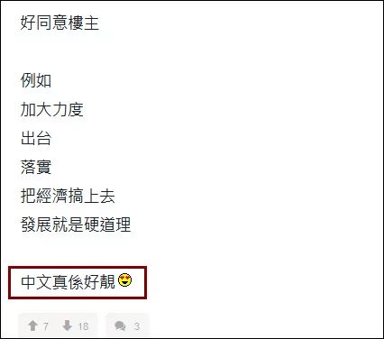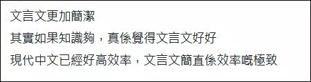 中文的字词出现在评论区,“出台”、“落实”、“把经济搞上去”、“发展就是硬道理”。。。。。。“连登仔”感叹“中文真是好靓!”“现代中文(汉语)的效率已经很高,文言文简直是效率极致。”
