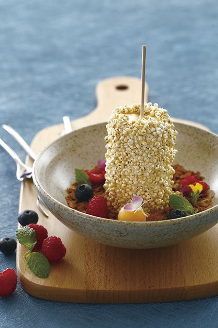吃完辣菜,需要用招牌甜品抚慰下舌尖。榴莲沙晶冰棍是这里出场率最高的甜点,选用在泰国当地榴莲果肉,配合两种奶油快速搅拌,在-23℃的低温下冷冻而成,高达60%的果肉,口感嫩滑、果香浓郁。