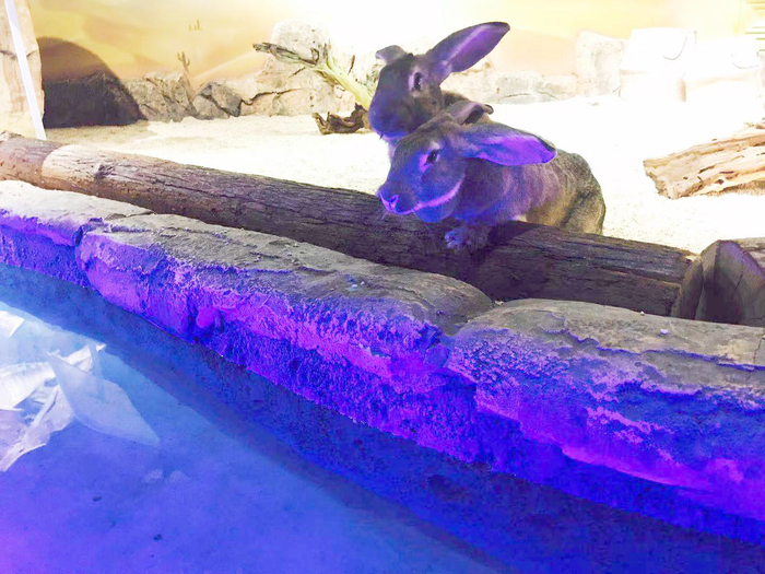 弗朗德巨兔有两只大大的耳朵,据管理人员介绍,这种巨兔最大可以长到一米多长。黑尾土拨鼠是松鼠科的成员,它们喜欢吃草本植物。在馆中,它们像是住在“豪宅”里,有的靠在一起睡觉,有的来回踱步,有的站在树墩上张望,而有一只则比较特别,它锲而不舍地用爪子刨着玻璃缝儿,有股“只要功夫深,铁杵磨成针”的劲头儿,就连投食的胡萝卜也不理会。