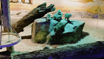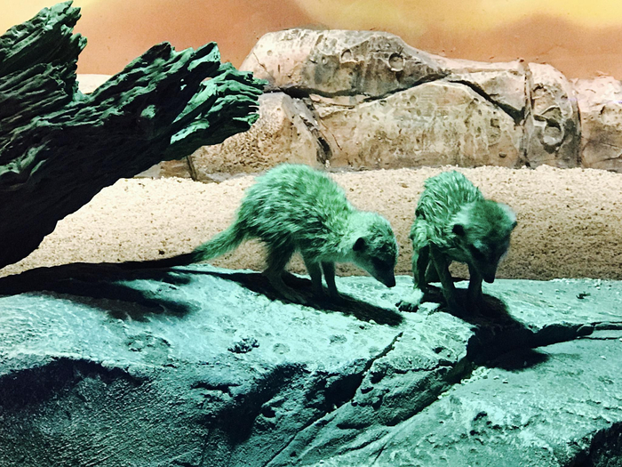 巨兔的邻居是小个头的狐獴,它是一种小型的哺乳动物。在场馆中,有一只狐獴因抢食掉进了水池,爬上来时,身上的毛都湿漉漉的,像一个做错事的小孩。不过,掉入瞬间的惊吓恐怕还没缓过来,身体悄悄打着颤。